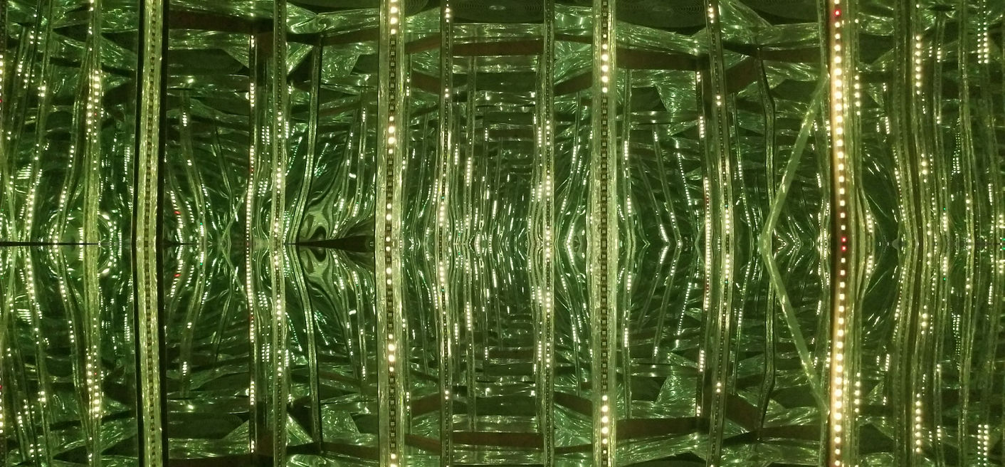 After much time contemplating our impact on the natural world in the Burning Light series, I wanted to find a way to explore this beautiful city and it's inhabitants. The sharp lights at the apexes of the mirrors trace shapes of skylines, traffic, and the rush of 20 million people living side by side. Simultaneously intense and open, this experience gives the participant three choices: You can stare at the lights and the vibrant energy, you can look at yourself a thousand different ways, or you can stare past both and seek the emptiness.